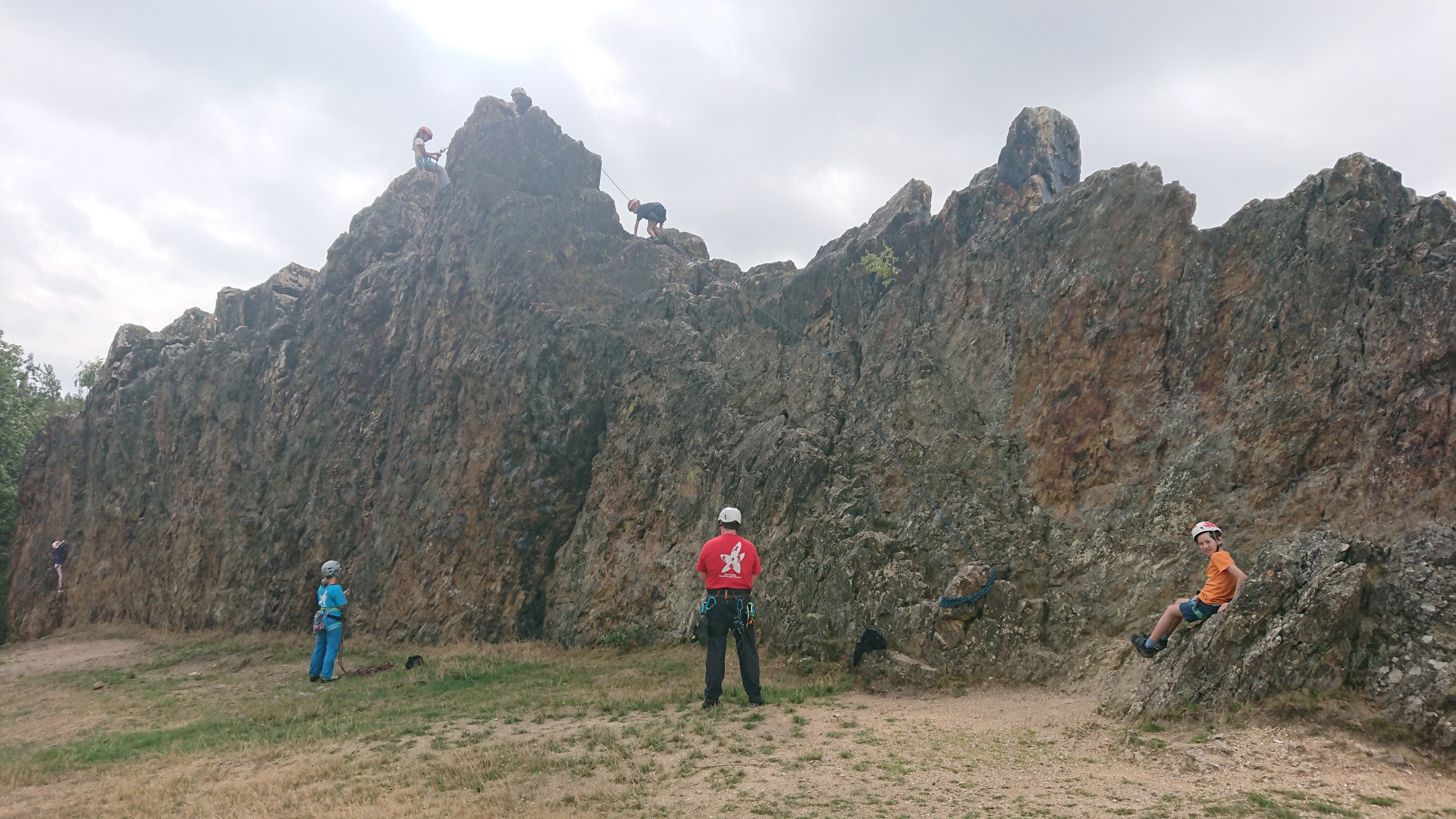 18 Kinder tummelten sich am Samstag und Sonntag an den Eschbacher Klippen, einige hatten den ersten Felskontakt, manche waren Wiederholungstäter. Großen Anklang fand die von uns eingerichtet Abseilpiste. Es war sehr schön zu beobachten welche Vortschritte die Kinder während der zwei Tage am Fels machten.